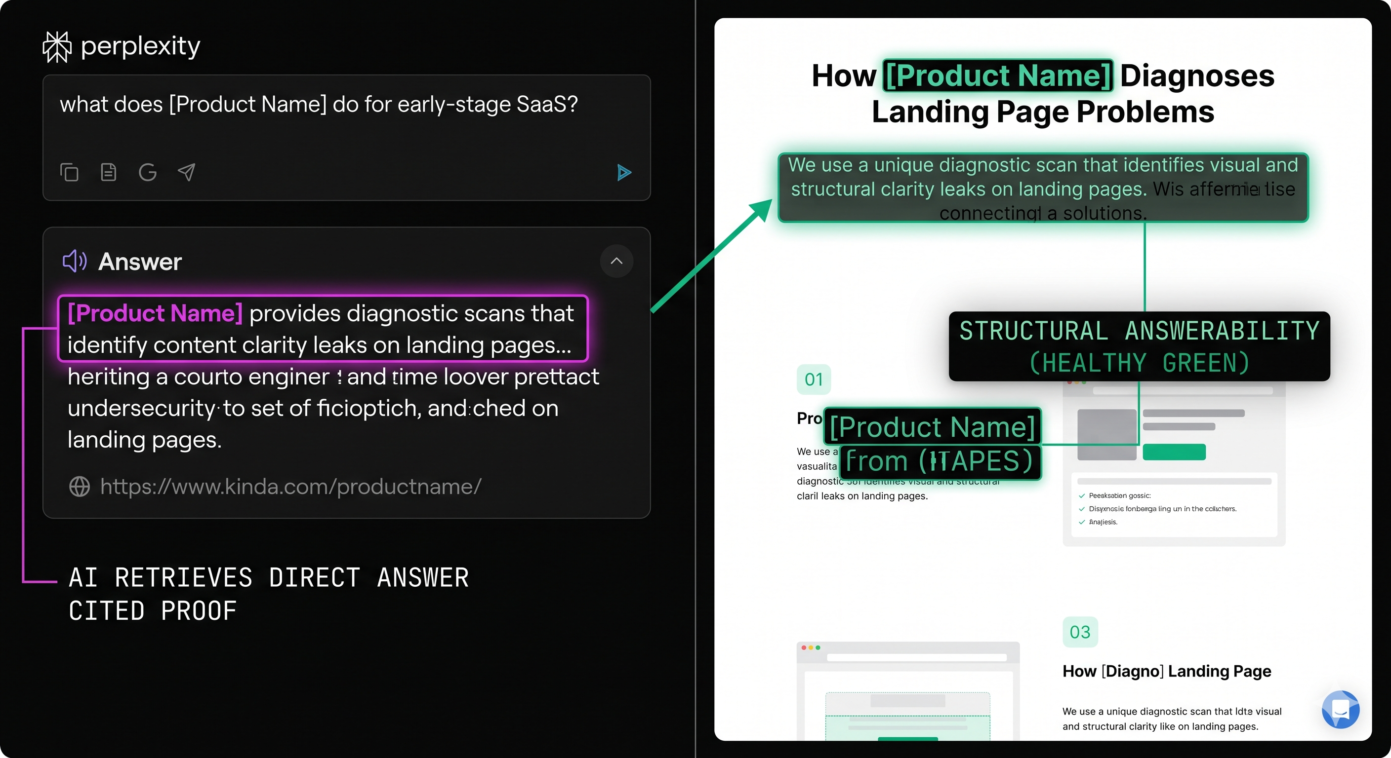 A page that answers "what does this product do and who is it for" in the first two sentences of the body copy is dramatically more retrievable than a page that takes four sections to get there.